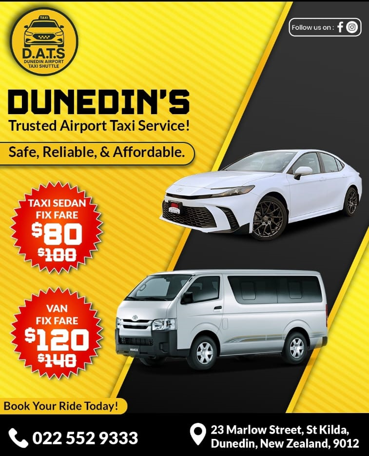 Embark on a hassle-free journey with Dunedin Airport Taxi Shuttle. Our dedicated service ensures prompt and dependable transportation, allowing you to reach your destination comfortably and on time. Experience the ease of travel with us.